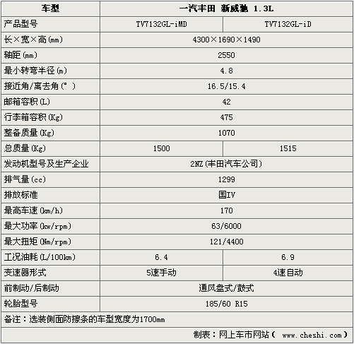 新威馳同樣搭載了豐田最新的4缸16氣門vvt-i發(fā)動機,在排放上也達到了國IV標準,該發(fā)動機具有可變正時氣門技術(shù),這樣可使這款小車油耗更為經(jīng)濟,1.3L手動擋的百公里油耗僅為6.4升。另外新威馳低配車型還可選配天窗,這樣一來,消費者可根據(jù)自身需求來進行購車的選擇,比較人性化。說到這里,我們只是希望新威馳的定價不要像老款那樣過高,如果新威馳頂配的價格超過了11萬,相信許多消費者都會望而卻步,另選新歡了。