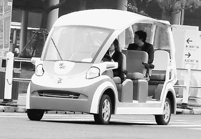 上海世博園內(nèi)運(yùn)行著太陽能、新能源汽車、LED照明工程等低碳應(yīng)用項(xiàng)目。圖為燃料電池觀光車正在世博園區(qū)載客運(yùn)行。