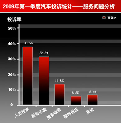 中新網(wǎng)4月24日電 日前,中國質(zhì)量協(xié)會(huì)用戶委員會(huì)、車人網(wǎng)聯(lián)合發(fā)布了2009年一季度中國汽車產(chǎn)品質(zhì)量與服務(wù)質(zhì)量分析報(bào)告。統(tǒng)計(jì)顯示,在關(guān)于汽車產(chǎn)品服務(wù)質(zhì)量的投訴中,久修不好仍是引發(fā)消費(fèi)者投訴廠家服務(wù)質(zhì)量的最主要原因。