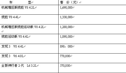 中新網(wǎng)11月8日電 近日,記者獲悉,路虎主力產(chǎn)品08款攬勝運(yùn)動版正式登陸北京、華北、西北、西南市場,其中4.4升V8汽油自然進(jìn)氣版價格為109萬元,4.2升V8機(jī)械增壓版價格為128萬元。經(jīng)銷商處現(xiàn)已接受預(yù)訂,訂金為5萬元。