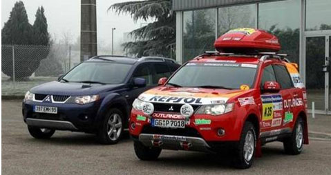 MITSUBISHI OUTLANDEREX支援車是在原有歐洲款OUTLANDER 2.2升(柴油版)市場銷售車型基礎上改進而成的。較原型車相比,外形變化不大,為進一步加強越野性能而改裝車底和前后護板、拖拽鉤以及車頂?shù)男欣钫值龋⑴鋫渖?個賽車桶椅、賽車用五點式安全帶、防滾架,以及副油箱、GPS導航系統(tǒng)等這些在沙漠中遠行必不可少的裝備。發(fā)動機、變速箱和底盤等基本維持市場銷售車的規(guī)格。