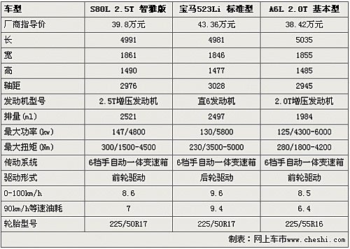 沃爾沃S80L/奧迪A6L/寶馬5 三款入門級豪車對比