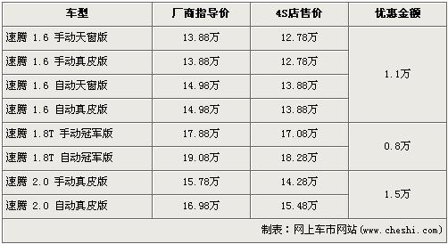 據(jù)北京一汽大眾經(jīng)銷(xiāo)店銷(xiāo)售人員介紹,在上海車(chē)展上亮相的速騰1.4TSI最早將會(huì)在下個(gè)月上市銷(xiāo)售,預(yù)售價(jià)格可能不會(huì)低于16萬(wàn)元,此車(chē)的上市將會(huì)取代目前在售的速騰2.0升自動(dòng)擋車(chē)型。近期購(gòu)買(mǎi)速騰在售車(chē)型的消費(fèi)者都可以得到不同程度的優(yōu)惠,速騰1.6L車(chē)型優(yōu)惠1.1萬(wàn)元,1.8T冠軍版車(chē)型優(yōu)惠8000元,2.0L車(chē)型優(yōu)惠金額達(dá)到了全新最高的1.5萬(wàn)元,但是2.0L車(chē)型目前店內(nèi)無(wú)現(xiàn)車(chē),預(yù)購(gòu)買(mǎi)者需交訂金1000元,約等一周后可提車(chē)。