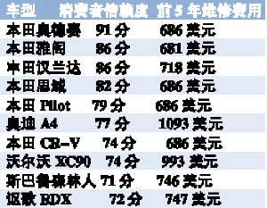 作為一種耐用消費品,車輛的耐用性(使用成本)已經成為購車的主要衡量指標。近日,美國財經雜志《福布斯》評出了10大經久耐用車型(Ten Toughest Cars)。評比標準涉及消費者信賴度,新車故障率,前5年維修費用及安全性能等綜合表現,結果日系車大獲全勝。除了奧迪A4、沃爾沃XC90外,排名最耐用性前10名中有8款是日本車系,美國本土車型則全軍覆沒。其中本田一家就占了6款,奧德賽和雅閣分別位于排行榜的前兩位,這或許可以解釋日系車在全球范圍內的成功。(王燦彬)
