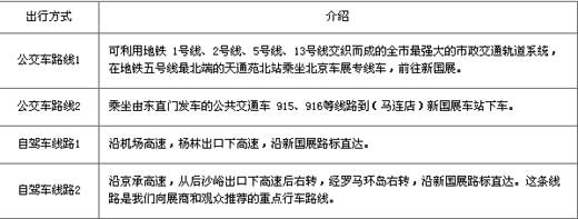 (2)乘坐由東直門(mén)發(fā)車(chē)的公共交通車(chē)915、916等線(xiàn)路到(馬連店)新國(guó)展車(chē)站下車(chē)。