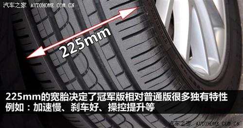 既然輪轂輪胎那么重要,現在就來著重介紹一下。冠軍版的17寸輪轂為多輻造型,搭配225/45 R17的低扁平率輪胎,看上去很有性能鋼炮的味道。此外令人感到驚喜的是,冠軍版速騰使用的是倍耐力P-ZERO輪胎,意大利輪胎廠商倍耐力素來就以生產高性能輪胎著稱,而這款P-ZERO更是倍耐力系統中注重運動性和操控性的一款,穿著如此高性能的跑鞋,想必速騰冠軍版會表現出更出色的抓地力和彎道速度極限。但希望今后這款輪胎不要成為減配的對象。