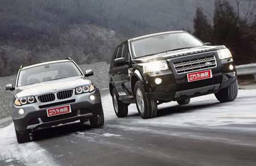 同出名門,且個(gè)性鮮明,在車身尺寸和價(jià)格上也都相近。因此,神行者2和X3自然而然成為直接競(jìng)爭(zhēng)對(duì)手。有鑒于性能特點(diǎn),在進(jìn)入測(cè)試內(nèi)容前,我們先明確一下對(duì)它們的稱呼。顯然,“SUV”這個(gè)概念寬泛、模糊的名詞缺乏準(zhǔn)確性。那就按照廠家各自的定位來(lái)歸類它們的屬性吧,路虎神行者2——越野車、寶馬X3——SAV(Sport Activity Vehicle)。