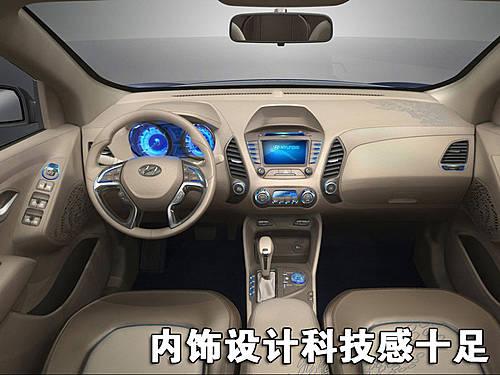 現代ix-onic采用了六邊形的中網設計。這種設計元素最早出現在2006年的Genus概念車上,然后又在2008年的i-mode概念車上得到發展,而在ix-onic則是進行了進一步的進化。在ix-onic的前大燈組中集成了創新設計的LED日間行車燈,當近光燈打開時,日間行車燈光束會在電子系統的控制下下移。