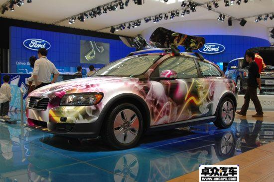 這款車造型和普通的C30沒什么區別,不過車身顏色采用了夢幻般的色彩涂裝,非常好看。此外,車窗和擋風玻璃也能投影各種影像,配合車身顏色讓這款車看起來非常炫動。很好的契合了C30以及沃爾沃汽車年輕、時尚、激情的形象。