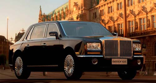 吉利GE的車長在5.3米左右,軸距3.1米左右。我們從外形上可以看出,它與勞斯萊斯幻影有著非常相似的造型,僅在細節處理上有所不同,GE大燈異常寬大,接近正方形,勞斯萊斯幻影上的大圓霧燈則移植到保險杠上,大燈與霧燈中間以長條形的方向燈隔開。而這也是吉利這款高檔豪華轎車的理念:具有勞斯萊斯風格的產品。在車內,也同樣是勞斯萊斯幻影的風格:前后排隔離玻璃、羊毛地毯以及星空頂篷等,同樣給人非常豪華的感覺。另外,我們注意到,車內的后排只有一個座椅,彰顯了后排乘客的尊貴性。在后排座椅的兩側有吧臺和冰箱,而在車門內側還有專門放雪茄的儲藏格。其售價將超百萬,最快將于2011年正式上市。