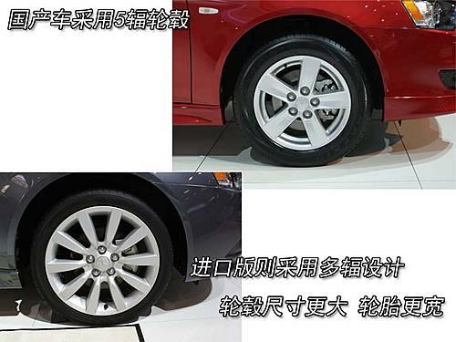 不過相比進口車型的多輻輪轂式樣,國產(chǎn)的LANCER EX仍使用了較為經(jīng)典的5輻輪轂式樣,在外觀感覺上不如前者具有動感。