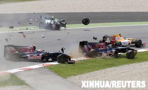 F1西班牙站:四賽車連環撞 碎片及輪胎"滿天飛"(2)