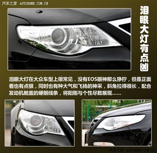 大眾CC并不像尚酷那樣有一付毫不遮掩的前衛外表,它身上依然有著大眾一貫的低調與沉穩,只有當你將目光在其身上反復游走時才會發現大眾CC的特別之處。雖然乍一看它保留了幾乎全部的大眾傳統設計,但是同時也明顯加入了很多更為有棱角更加夸張的元素。比如同樣是淚眼大燈,雖然不像EOS的眼神那么兇狠,但也還是有點兇的意思,而且更大碼,側面角度也拉得很斜,配合車頭線條的硬朗,顯得既大氣也很陽剛。