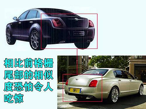 來(lái)到車(chē)尾,華泰C級(jí)車(chē)要比前臉更夸張,與賓利歐陸飛馳的尾部設(shè)計(jì)非常的相似,整體式的后尾燈,雙尾管鍍鉻設(shè)計(jì)都完全一樣。