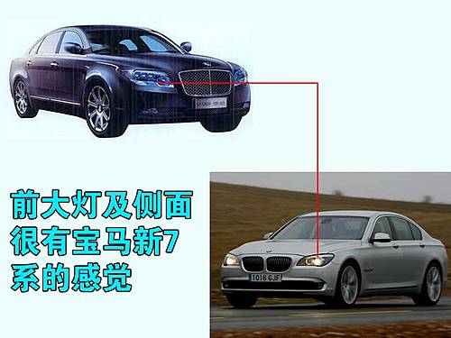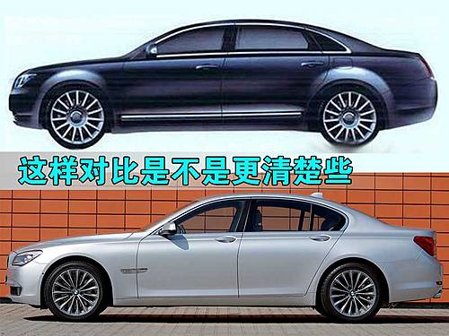 從側(cè)面看,能夠更直觀看出它與寶馬7系的相似度,同樣的車(chē)頂弧線、高腰線,甚至連多輻輪轂都相當(dāng)神似,不過(guò)寶馬所推崇的后窗內(nèi)旋弧度沒(méi)有被搬走。