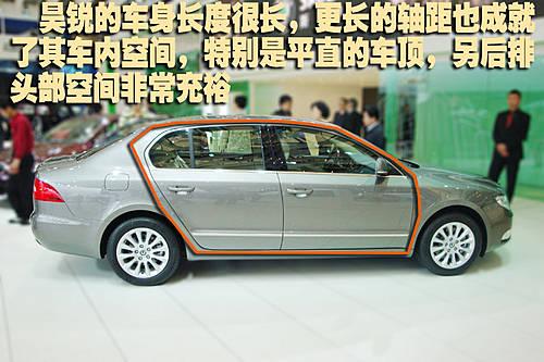 言歸正傳,說完了斯柯達昊銳的一些亮點下面我們還是從外觀到內飾向您去介紹一下這款車型。斯柯達昊銳雖然與邁騰為相同平臺,但是它的車身軸距卻整整加長了52mm、整車長度也超過了4800mm、但寬度和高度卻都小于邁騰,因此這使得該車從側面看上去更加修長,且內部空間也將更加寬敞。