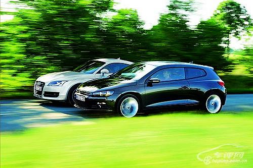 當(dāng)“尚酷”吹來時,情況變了。這是一位血緣相同的異姓兄弟,同樣來自PQ35平臺,同樣是轎跑車,一身平民裝束讓它看起來就像是一位起義領(lǐng)袖。雖然它登臺的目的不是要窩里反,可是這無疑給了我們這些成天琢磨汽車的好事者一個制造“爭端”的機(jī)會。于是TT 1.8TFSI和尚酷1.4TSI就被強(qiáng)迫上了擂臺。