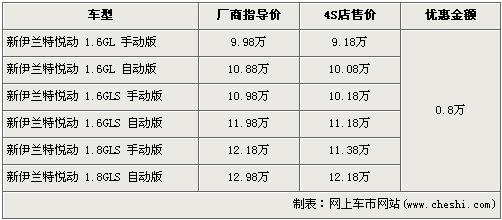 據(jù)北京現(xiàn)代經(jīng)銷商處銷售人員介紹,新伊蘭特悅動全系車型優(yōu)惠8000元,經(jīng)優(yōu)惠后全系入門級的1.6L GL手動版的售價(jià)為9.18萬元,是全系的最低價(jià)格。銷售人員還介紹,1.6L車型現(xiàn)車充足,而1.8L車型店內(nèi)現(xiàn)車有限顏色不全,欲購買無現(xiàn)車的1.8L車型消費(fèi)者需交納3000元現(xiàn)金,等一周后可提車。