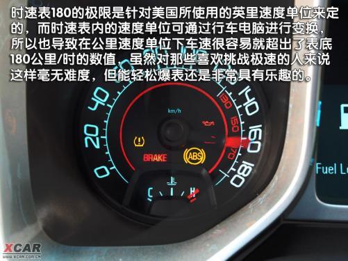 方形的儀表盤的造型有些前衛(wèi),似乎在提示人們不要忘記它的前身是概念車。中間的多功能顯示屏還是功能很豐富的,可以顯示車速、瞬時(shí)油耗、平均油耗等各種行車信息。在右側(cè)紅區(qū)表底9000轉(zhuǎn)的轉(zhuǎn)速表內(nèi),可以看到SS的小logo。左邊的時(shí)速表實(shí)在有些不夠讓人心動(dòng),為什么這么說呢,因?yàn)闀r(shí)速表的表底數(shù)值為180,難道Camaro SS這么強(qiáng)大超級(jí)跑車最高時(shí)速只能達(dá)到180公里/時(shí),不是之前官方說288公里/時(shí)嗎?據(jù)工作人員介紹,180的極限數(shù)值是針對(duì)美國所使用的英里速度單位來定的,而時(shí)速表內(nèi)的速度單位可通過行車電腦進(jìn)行變換,所以也導(dǎo)致Camaro SS在公里/時(shí)的速度單位下,很容易就超出表底180的最高車速,雖然對(duì)于那些喜歡挑戰(zhàn)極速的人來說180公里/時(shí)實(shí)在是毫無難度,但能夠如此輕松爆表還是非常具有樂趣的。