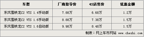 據(jù)4S店銷售人員介紹,目前東風(fēng)雪鐵龍C2現(xiàn)售的為1.4和1.6手動(dòng)檔運(yùn)動(dòng)版車型。價(jià)格上,1.4手動(dòng)檔可以優(yōu)惠現(xiàn)金1.2萬元,優(yōu)惠后售價(jià)為6.68萬,1.6排量優(yōu)惠1.5萬元,優(yōu)惠后售價(jià)為7.38萬元。除此兩款之外,1.6自動(dòng)檔只有個(gè)別店內(nèi)有車,同樣優(yōu)惠現(xiàn)金1.5萬元。消費(fèi)者在選購中主要有黑色、紅色、銀色等外觀可選,而部分經(jīng)銷商處全系車型還需要預(yù)訂。