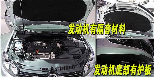 在車頭部分發動機下方我們發現了保護油底殼的護板,這顯然是一項比較細膩的配備,通過它可以有效的避免路上飛起的石子或凹凸不平的路面,對發動機下方以及車體下部造成傷害。