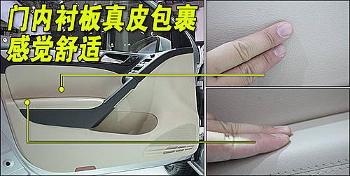 車門襯板采用了真皮作為材料,手感很軟,當駕駛者把肘部放上去時不會有生硬的感覺。