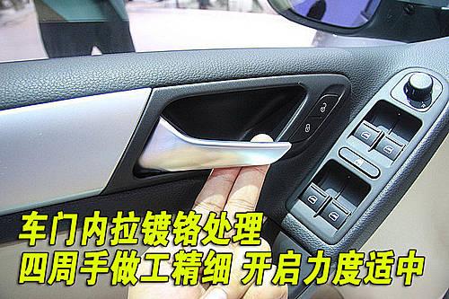 第六代高爾夫四只車門拉手都噴上了與車身同色的車漆,開啟車門時發(fā)現車門拉手部分做工比較細致。