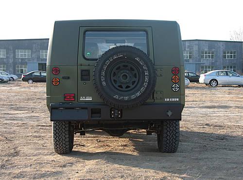其外形設計的目標原則是強調在繼承中發展的思路,實現突破創新和現代感的全新造型;強調具有中國文化底蘊,不與國內、國外車型雷同;在保持傳統特色的同時,來強化現代感。其以粗獷、簡潔、威武的造型,展現了我軍威武之師、現代軍隊的風貌和現代“硬派”越野車的風格。外形個性鮮明,車身外觀緊湊而流暢,前臉造型模仿狼眼外眼角上揚、怒視前方的表情,與前保險杠融為一體的狼牙造型,將野性、威猛的氣勢演繹得淋漓盡致。篷頂后部稍向下沿伸,恰似豹子起跑前的后坐姿勢,突出了整車的動感與強悍。