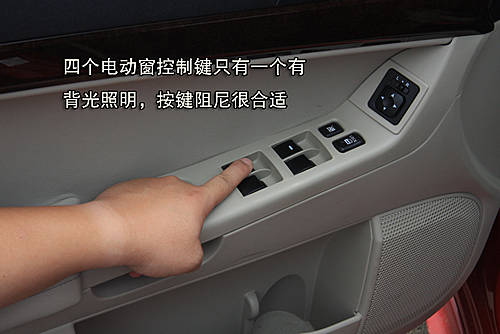 駕駛員一側的四個電動窗控制鍵只有一個有背光照明功能,玻璃升降的噪音和穩定性比同級別其它品牌日系車表現要好些。