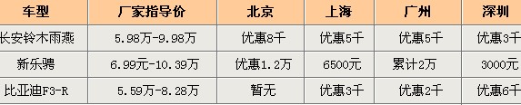 編輯點評:長城炫麗推出CVT無極變速器是開辟了新的創舉,目前A0級別的車型在國內也備受關注。隨著油價的不斷高漲,且國家購置稅減半政策的推行,小排量的車型的性價比尤為突出。而長安鈴木雨燕的1.5LCVVT發動機也是受到很多年輕人喜歡,只是價格一直居高不下。而新樂騁雖然沒有心樂風銷量那么好,但是也是雪佛蘭好賣的車型,目前市場優惠還可以,比較的實惠。另外,比亞迪F3的兩廂代表車型的市場遠不如三廂車那么如魚得水,而且市場讓利幅度也無大的波動,所以不是太被消費者接受。