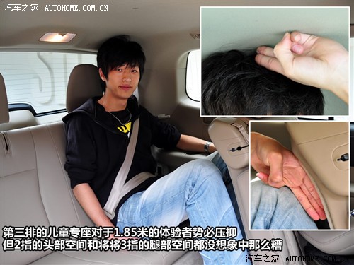 漢蘭達的長寬高分別為4785毫米、1910毫米和1730毫米,軸距2790毫米。龐大的尺寸賦予了它寬敞的車內空間。首先,它的空間變換非常靈活,第二排座椅可以變換兩座或三座的形式。第三排座椅如果想舒服的坐下成年人,可以手動調節第二排座椅遷移,即使把第二排座椅移至最靠前的位置,1.85米乘客仍然能有不錯的空間,而此時第三排也可以坐下一位同樣身高的乘客,可見漢蘭達在空間方面確實是強項。