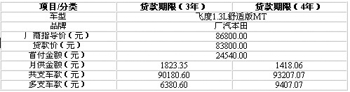 貸款詳解:飛度是小型家用車的典范,這點(diǎn)從它的銷量上就能看出來。缺點(diǎn)么,可能就是大家比較關(guān)心的安全和價錢問題?傮w來說,飛度綜合素質(zhì)較高,是第一臺車的好選擇。該車首付需2萬余元,月供僅需1400余元,對于手頭緊張的消費(fèi)者來說還是比較劃算的。