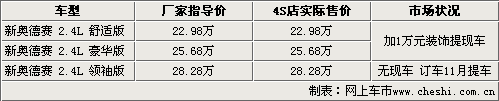 據北京地區廣州本田4S店銷售人員介紹,新款奧德賽在上市之前訂單數量已經非常火爆,上市之初各經銷商只有展車和試駕車。目前訂單數量仍在增加,只有部分4S店有部分現車銷售,消費者要提現車的話則必須要加裝1萬元的裝飾。如果訂車的話需要繳納5000元-1萬左右訂金,11月初才能提到車。