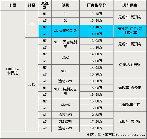 花冠EX系列兩款豪華版車型在增加了天窗的基礎上,還配置了真皮座椅、前閱讀燈等實用配置。價格放買你相比較G特別版漲了3000元。新增加的4款車型均為1.6小排量車型,消費者在購車同時可以享受購置稅優惠活動,目前尚沒有現車到店,消費者購車的話需要交訂金1萬元,預計月底可以到車。