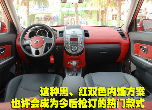 在方向盤也就是駕駛者的周圍分布著很多按鈕,不過別擔心,再生疏的駕駛者也不會因為這些按鈕或是功能而手忙腳亂,因為設計師早已經為您的日常使用考慮的很周到了。位于儀表臺左側的三炮筒式儀表盤設計還算時尚,但是儀表盤的功能并沒有太多新鮮元素的注入,這一點也是因為成本的考慮而不得不落入俗套。中控臺左側下方是控制大燈高度的調節按鈕,右側的控制鈕是SOUL的最大特點,即控制前車門揚聲器發光的開關,它可以跟隨音樂節奏變換紅色燈光的閃爍,如同將迪廳的燈光帶入了車內。
