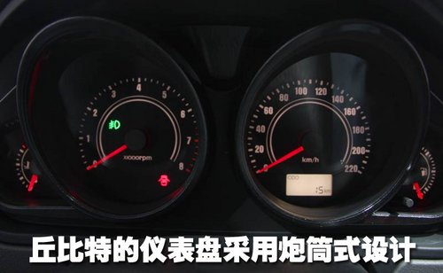 丘比特的儀表盤采用傳統的居左式設計,而雙炮筒的設計方式使這款小車看上去運動氣息十足。只不過感覺儀表盤刻度比較小,看上去不是非常清晰。