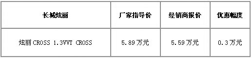 長城炫麗1.3CROSS直降3000元 小車也拓界