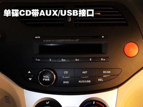 凌傲的音響系統采用目前比較主流的單碟CD設計,配合AUX/USB接口,整個按鍵都比較大,方便駕駛員操作,由于時間短暫沒有體驗到凌傲的音響效果如何。