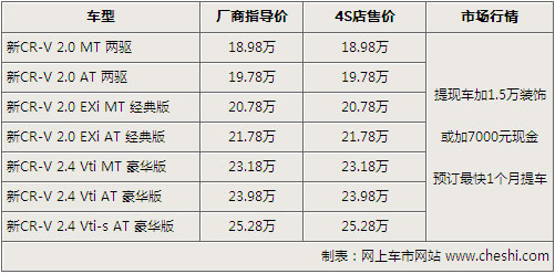 筆者從經(jīng)銷店了解,目前CR-V仍需要加價購車,提現(xiàn)車需要加7000元現(xiàn)金或者加裝1.5萬元的裝飾,裝飾項目包括了腳墊、尾翼、行李架、踏板等。消費者可根據(jù)需求選購,目前2.0和2.4自動檔有黑色、銀色現(xiàn)車供應(yīng),但顏色不齊全,訂車的話訂金為1-2萬元,最快1個月可以提到車。