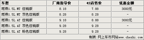 據(jù)長安鈴木4S店銷售人員介紹,雨燕目前現(xiàn)車并不多,炫銳版手動擋和自動擋兩款車型目前只能優(yōu)惠3000元。以外,還有手動雙色炫銳版,目前只有極少現(xiàn)車,并且沒有任何優(yōu)惠。而自動雙色炫銳版和粉色炫銳版目前都沒有現(xiàn)車,預訂需要等15天左右。
