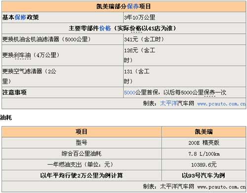 在保養(yǎng)方面,廣汽豐田為凱美瑞提供了3年或10萬(wàn)公里的整車質(zhì)保,在同級(jí)車型中相當(dāng)出眾。凱美瑞擁有2.0升和2.4升兩種排量車型,我們從廣汽豐田4S店了解到,凱美瑞擁有的這兩款車型保養(yǎng)費(fèi)用幾乎是一致的,只是在個(gè)別零部件上有微小的差異。