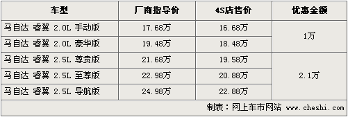 一汽馬自達睿翼 最高優(yōu)惠2.1萬