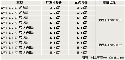 一汽豐田RAV4 提現車加價5000元