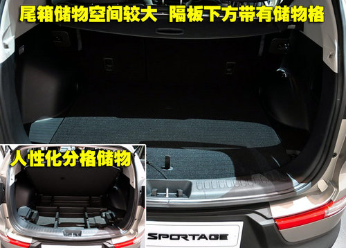 對于起亞SLC而言,儲物是它的最大強項,當后排座椅完全放倒下,備箱儲物空間進一步加強。另外備箱的開口也很大,便于取放較大的物品。備箱隔板下另設有暗藏的儲物格,并且帶有分隔設計,存放小物品時也更加方便,人性化設計值得稱贊。