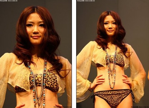 在北京車展的現(xiàn)場我們驗證這個質(zhì)疑確屬事實,此次北京車展中孔燕松、孔瑤竹(孔燕松的妹妹)均以模特的身份出現(xiàn)在了克萊斯勒的展臺,從我們拍回的近距離照片來看,孔燕松的皮膚并不是太好,讓一個有輕度密集物質(zhì)恐懼癥的我看到了有些想起雞皮疙瘩的感覺,不知道大家看過之后是什么感覺,俗話說照片是三分照、七分P,這里所說的P是指photoshop軟件,這樣就說明網(wǎng)上流傳的孔燕松的照片還是經(jīng)過處理的照片。
