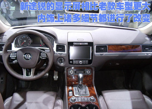 在內(nèi)飾方面新途銳一改沉穩(wěn)的設(shè)計(jì)風(fēng)格,三輻式多功能方向盤替代了源自輝騰的四輻式設(shè)計(jì)。類似的多功能按鈕集成了影音系統(tǒng)、行車電腦、定速巡航、車載電話等操控設(shè)置,集中體現(xiàn)了新途銳的駕駛樂趣。