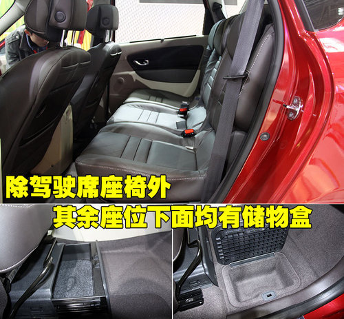 雷諾新風景的后排空間比較充足,對于一般身材的乘員來說都能夠得到比較充足的腿部空間。另外座椅下方還配備了實用的儲物盒,使用簡單方便。座椅兩側的B柱上還設計了左右獨立自動空調,為消費者提供了舒適的乘坐環境。