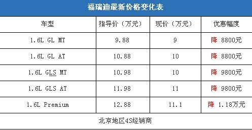 近日,編輯從北京地區東風悅達起亞4S經銷商處了解到,福瑞迪1.6L車型的現車充足,目前購車最高可以優惠1.1萬元,性價比很不錯。據經銷商透露,消費者要想以這個價格提車,需要在店內做購車一條龍服務,車輛商業險可以打9折。