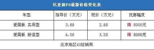 近日,編輯從北京地區(qū)比亞迪4S經(jīng)銷商處了解到,近期比 亞迪F0的現(xiàn)車比較充足,基本上可以滿足消費(fèi)者的購(gòu)車需求。目前購(gòu)車最高可以優(yōu)惠8000元現(xiàn)金,銷售人員透露優(yōu)惠幅度到店還可以再議,在店內(nèi)上商業(yè)保險(xiǎn)的話可以打9折。