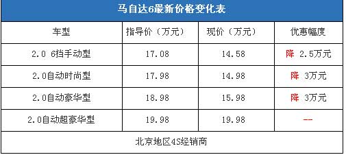 近日,編輯從北京地區方正利成一汽馬自達4S經銷商處了解到,馬自達6的現車充足,優惠幅度非常可觀,手動擋車型降價2.5萬元,而自動擋車型最高可以降價3萬元。據經銷商透露,選擇分期付款,那么消費者首付不足8萬元就可以把曾經的“神車”開回家。